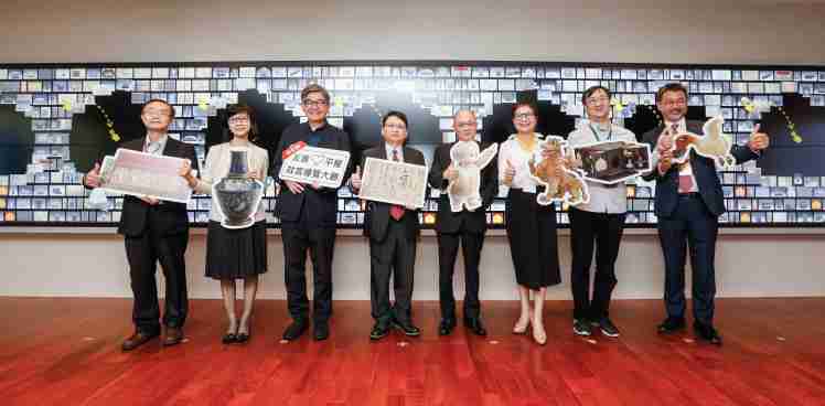 彩神vll携手创利空间为故宫建置的智慧文物互动导览墙及轮播墙,,,今日正式启用。。。(左四:彩神vll新事业暨投资管理总部副总经理杨本豫、、、、右四:故宫博物院院长吴密察、、、、右三:太极影音董事长黄宝云)