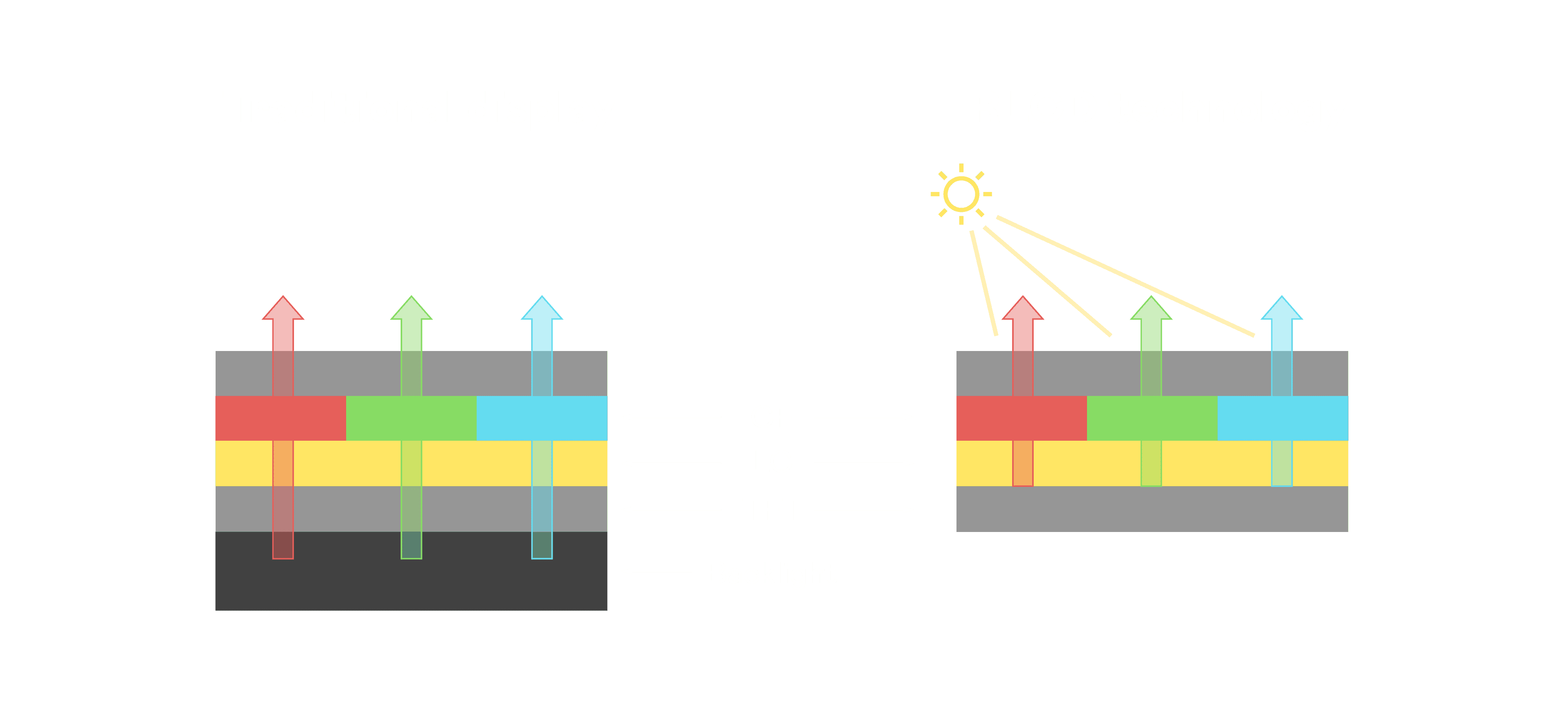 与传统需搭配背光单元的液晶显示相比,,,,反射式液晶技术不仅更省电、、、、更轻薄,,,且即便在艳阳下仍能清晰显示。。。。此外,,少了背光单元,,也大幅降低了 LED 蓝光伤害眼睛的疑虑。。