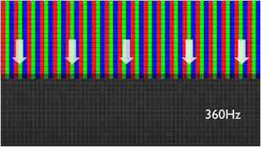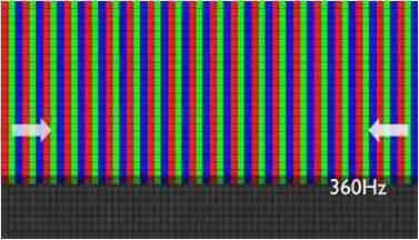 传统液晶驱动是从左到右单向进行,,,,在画面更新速度愈来越愈快的情况下,,,,位于驱动线路末端的右下角区域,,画素的闸极来不及在短时间内获得足够电压,,,,无法显示出正确的颜色资讯。。。 |